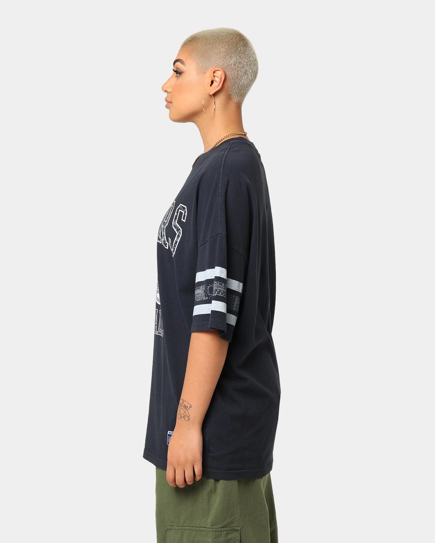 The Las Vegas Raiders Stripe Vintage T-Shirt features deliberately faded graphics to the front and sleeves for a well-loved look. The dropped shoulders give a loose fit to the body for ultimate comfort.