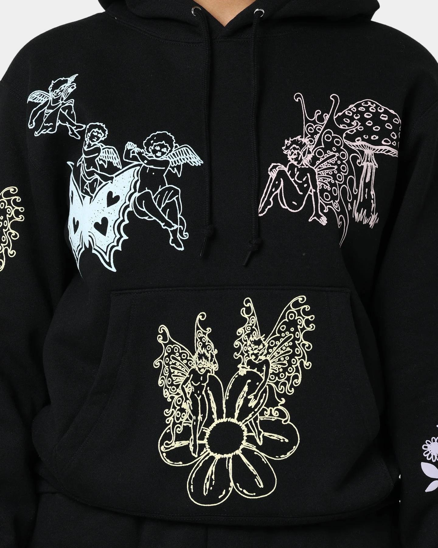 Unique pastel-coloured puff print graphics cover this hoodie for an iconic piece that stands out on the streets. Ribbed cuffs and hem keep you warm, with a classic kangaroo pocket and hood drawstrings to top this quality piece off.