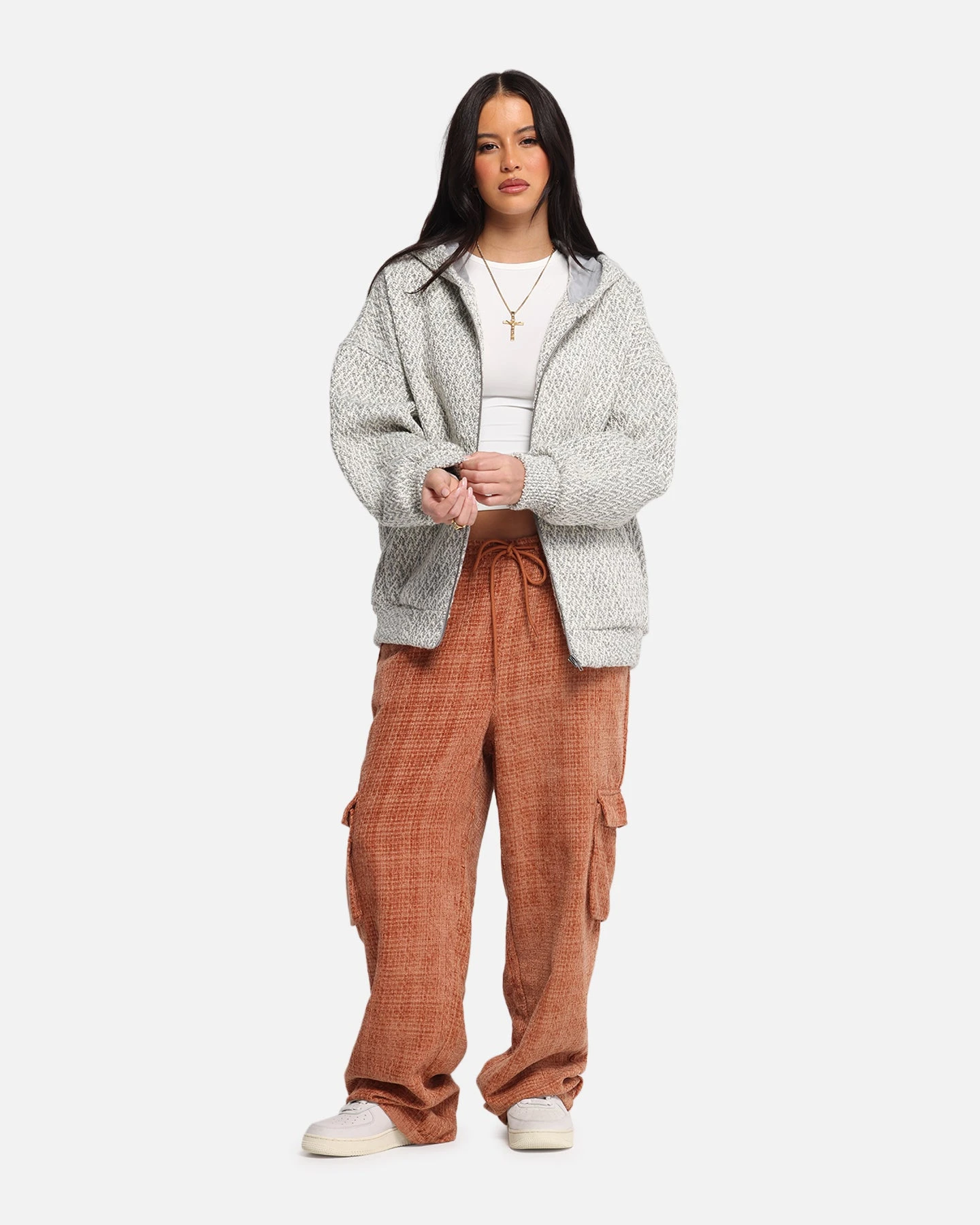 Cosy up in style with the Boucle Tweed Zip Hoodie by XXIII. Featuring a classic woven textured construction, with a full zip close so you can customise your look and ribbed trims to lock in the warmth. Secure yours today at Culture Kings.